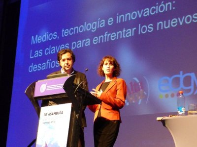 Laura Gordon, gerente general de AltaVoz, y Juan Pedro García, director de negocios de Edgy destacaron la importancia de la tecnología como un aliado de los medios.